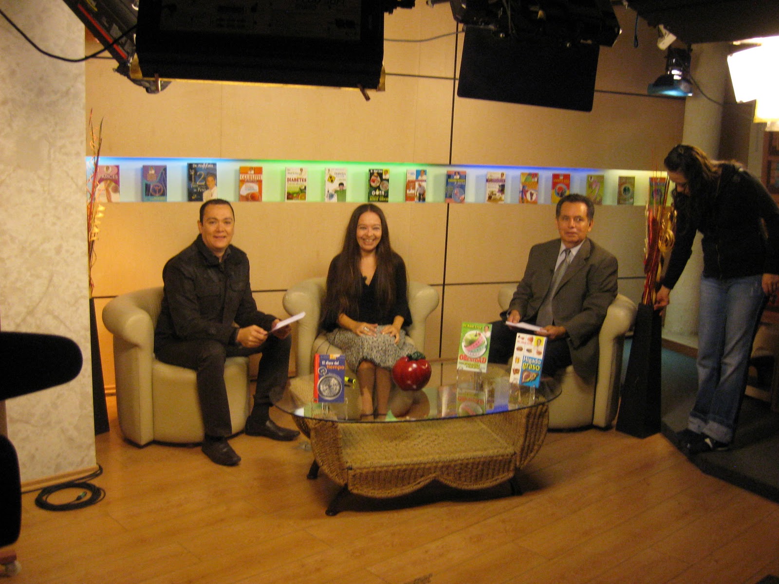 | El entusiasta equipo de Jugo de Letras en Vibra TV: Andy, Belem, Sandra y Edoardo |